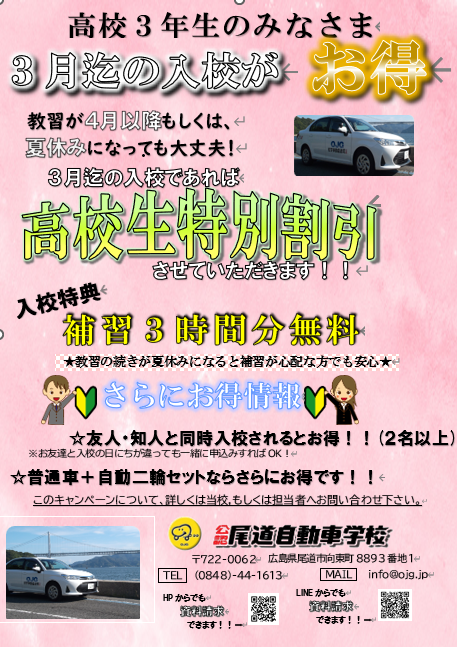 ※ご記入いただいた個人情報は株式会社広島県尾道自動車学校の紹介キャンペーン以外には使用致しません。